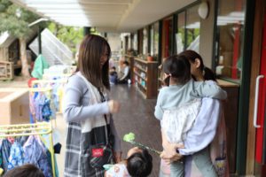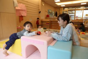 私たち保育者は、子どもたちとスキンシップをとったり、寂しい気持ちにそっと共感したりしながら、一人ひとりとの「1対1のやりとり」を大切にしています。