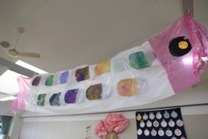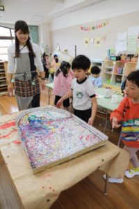 各クラスオリジナルのウロコを子どもたち一人ひとりがつくって、貼り付けています。